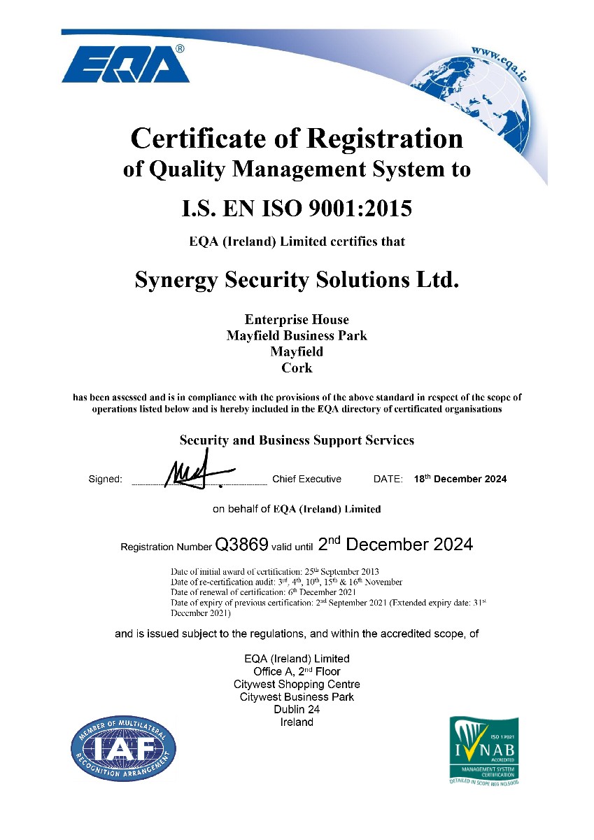 Synergy has a long standing reputation for delivering top quality service. Synergy Security Solutions is one of the principal members of the Irish Security Industry Association (ISIA).